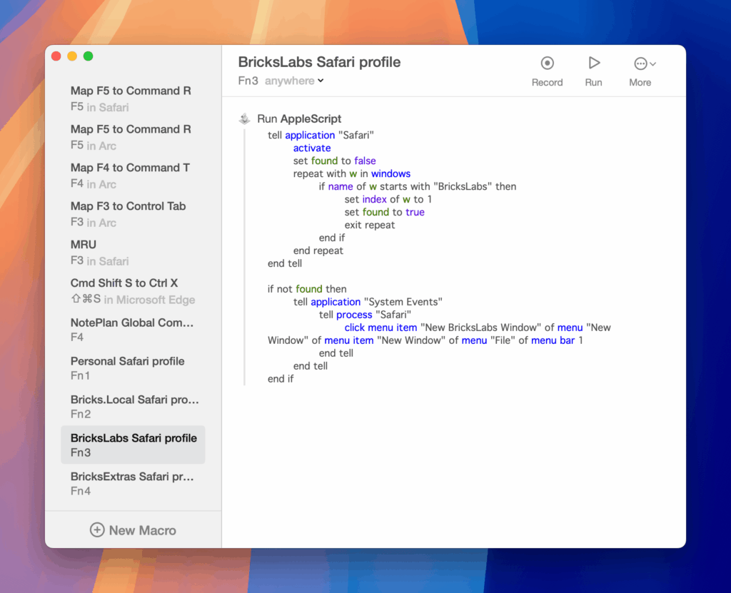 I wanted a way to have the shortcuts first look to see if a profile window is already open, and if so, switch to it instead of opening a new one.